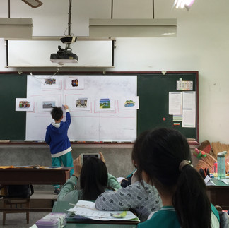 而六年級孩子們學習的課題則是「站上台簡報」介紹雲林各地特產,有的孩子台風穩建的朗朗唸誦,有的則緊張的小小唸錯,一輪結束了,老師問大家你們覺得誰是今天表現最好的呢?結果出乎意料之外,是大家以為第2名的孩子。老師一一說明每個人表現好的和可以再加強的地方,更說明上台簡報的重點是清楚的口條和與聽眾的視線交流,孩子在即將進入國中前能有這樣紮實的課程體驗,是遠超出英語學習範疇的,雲科大楊育芬主任說:「英語教學不只是教英語的能力,更應該是全人的教育。」